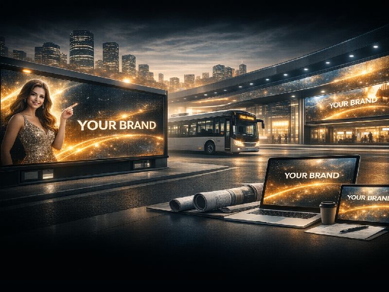 Our services include hoardings, billboards, transit media, airport branding, mall branding, and digital outdoor screens.
